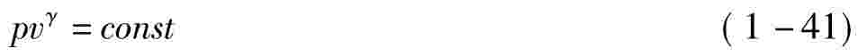 式(1-41)就是定熵过程的过程方程式。在p-v图上,定熵过程是一条高次双曲线,与定温过程方程式相比较,可知定熵过程的曲线更陡些。在T-s图上,它是一条铅垂线,如图1-14所示。